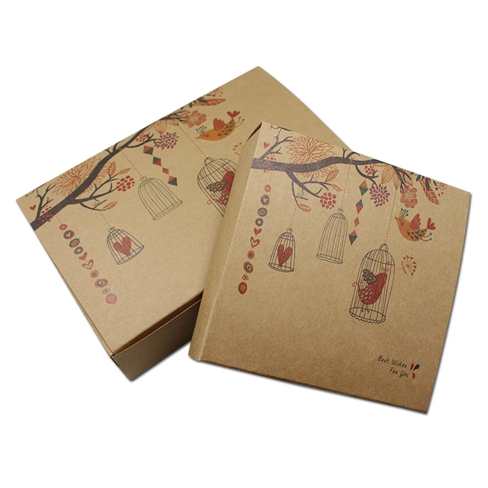 25Pcs/Lot Brown Kraft Paper Gift Box with Flower Bird Printed Foldable Paper Packing Boxes for Wedd