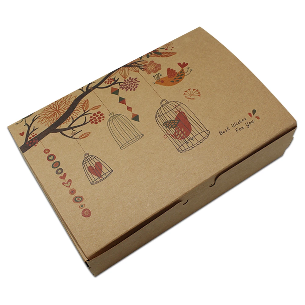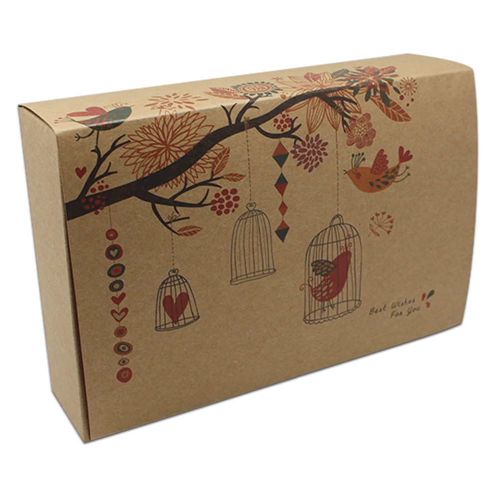 REVIEW TOP SELLER 25Pcs/Lot Brown Kraft Paper Gift Box with Flower Bird Printed Foldable Paper Packing Boxes for Wedd