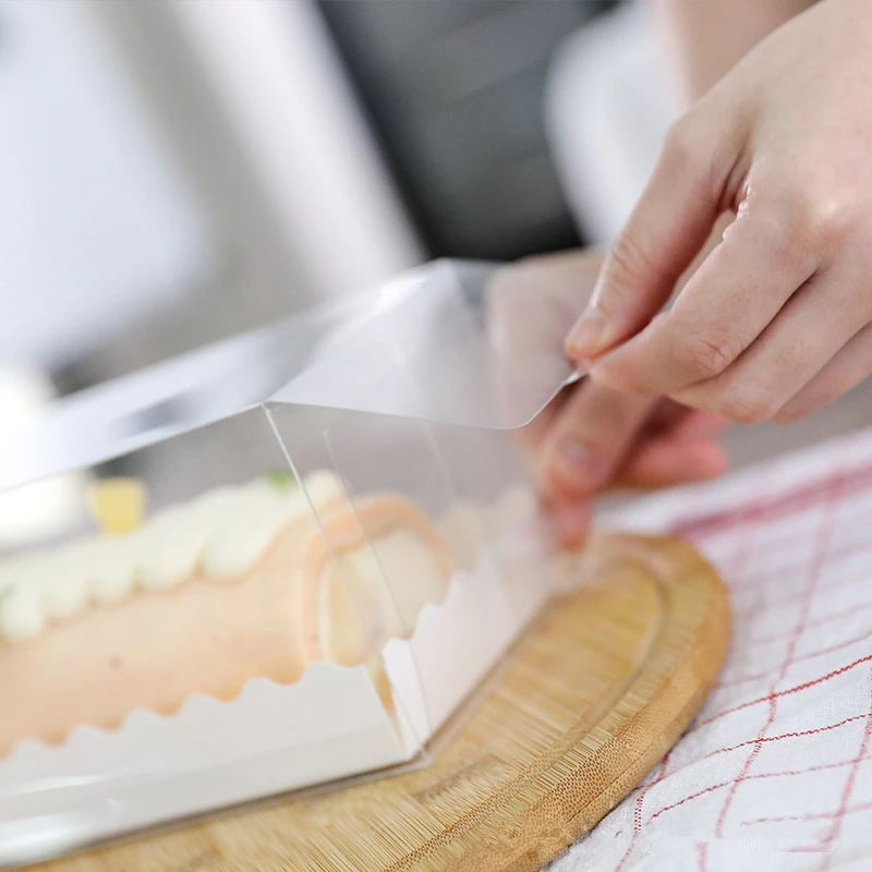 Hot Sale LBSISI Life 10pcs Swiss Cake Packing Box Clear Plastic Roll Boxes Rectangle Baking Cake Long Desser